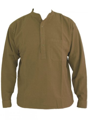 This is a Long Sleeved Grandad Collarless Shirt in Heavy Weight Cotton. Originally designed as a working mans shirt, these collarless heavy weight grandad shirts blend well with regular western wear, ideal for a great unique look.